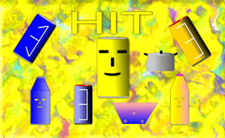 HIT Cans and Bottles. This game consists of: Cans, Cups, Bottles, Pot and Spoons. 17 levels. You have to hit and collect the items to go to the next levels.